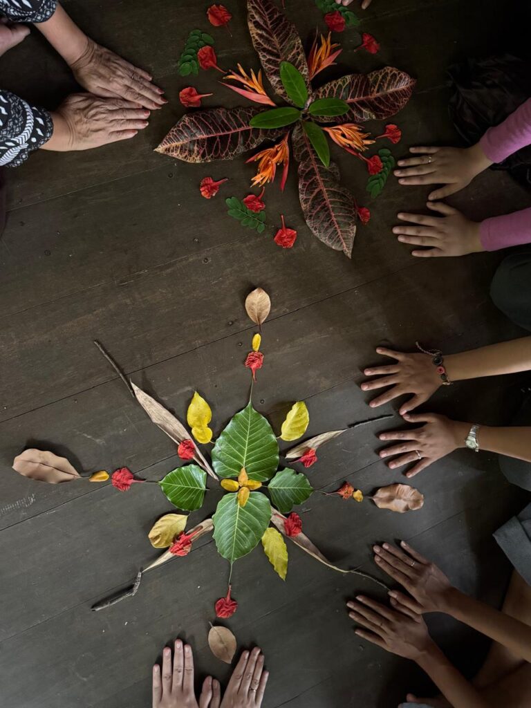 Waktu saya menyusun mandala dari daun-daun gugur, saya belajar bahwa keindahan keseimbangan bekerja seperti cermin. Mandala itu mengajarkan saya bahwa setiap elemen hadir sebagai sesuatu yang tunggal sekaligus bagian dari kolektif. Daun yang jatuh dan terbaring di lahan pun bahkan bisa jadi indah kalau dipadu-padankan dengan yang lain di tempat yang betul.
